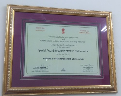 National Awards for Excellence in Hospitality education - IHM Bhubaneswar has bagged a special award for Administrative Performance.
